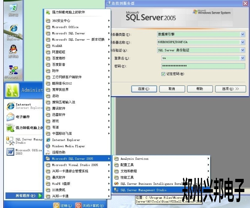 從數據庫中找到服務器的名稱,登錄名為sa,密碼為你安裝數據庫時的密碼。