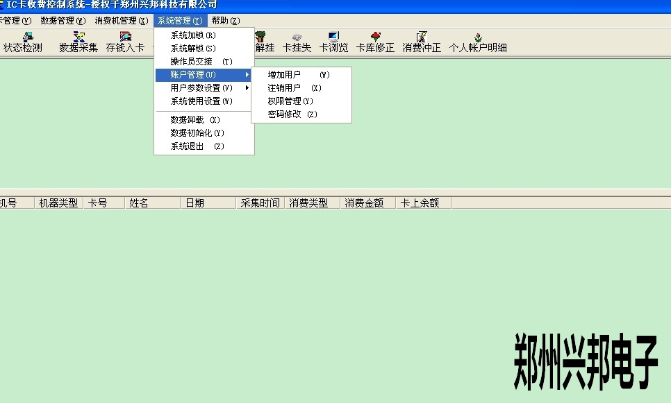 1. 打開485售飯機軟件--系統(tǒng)管理--賬戶管理--增加用戶,可以輸入賬戶、姓名、密碼,然后點添加后關(guān)閉此對話框即可。