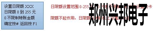 可查詢最近7天的消費匯總記錄,初始化和采集后還可查看匯總的內容。 ⑧按8號鍵進入設置日限額界面,如下圖所示: u 待機界面按*號鍵進入查看匯總界面,如下圖所示: 可查看未采集的記錄數、卡底金、日限額和最近7天的每一天的匯總金額。