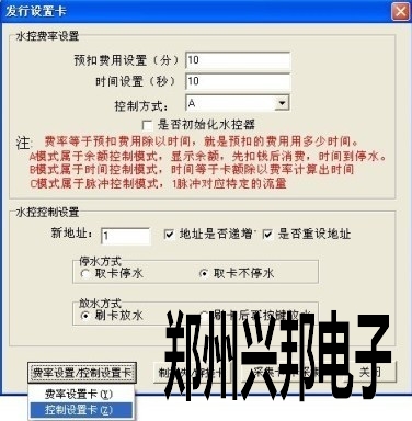 4、最后點(diǎn)擊“費(fèi)率設(shè)置/控制設(shè)置卡”按鈕選擇“控制設(shè)置卡”點(diǎn)擊確定完成就可