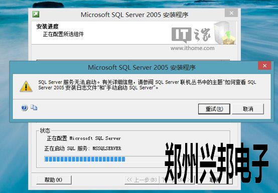 6、當出現Sql Server 2005無法啟動時,這個時候就不先點擊重試或者取消。