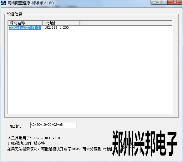借鑒修改方法,取模塊IP地址的最后一空數字轉化為16進制數作為模塊MAC地址的最后一位。比如模塊IP地址為192.168.1.250我們就取200,變為16進制數為fa,那么該模塊就可以設置為40-20-10-00-02-fa