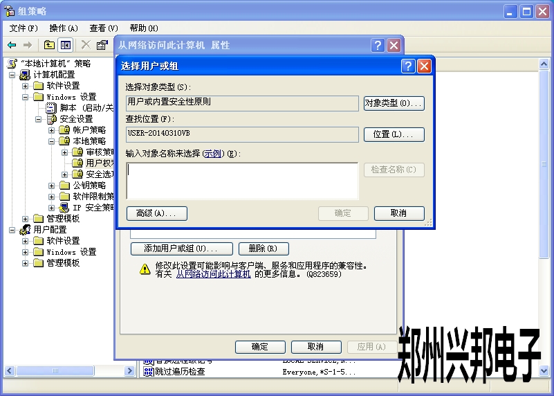 在“拒絕從網絡訪問”右擊“屬性”把里面的所有賬戶刪除