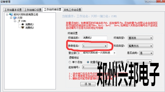 終端參數類型的選擇:打開設備設置,在工作站終端設置里,添加終端里可以選擇參數組名,或者添加終端后也可以修改選擇的參數組名。