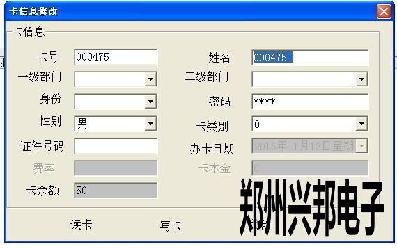 2、先把卡放IC卡讀卡器上,讀卡,出現(xiàn)卡信息后,直接修改卡信息。(注:卡號(hào)是不能修改的。卡號(hào)只有在發(fā)行的時(shí)候來修改,一但發(fā)行就不能修改了。)