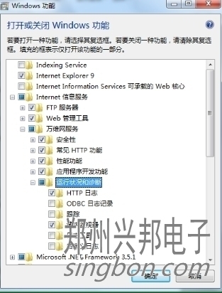 進入Windows功能窗口,然后看到internet信息服務(wù)選項,然后按照圖中設(shè)置即可,Ps:打√的選項下面為全選,方圈的下面按照圖中打√的選擇即可。