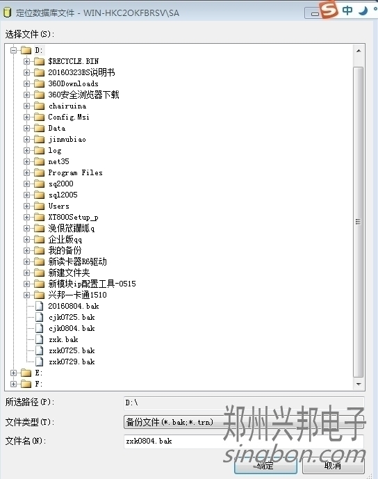 點擊“...”,出現下圖頁面,選擇合適的路徑,文件名以備份當天日期命名(后綴為.bak)。