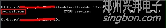 繼續輸入tasklist|findstr "2720",回車,查看是哪個進程或者程序占用了2720端口,結果是:svchost.exe